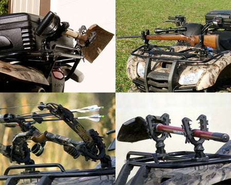 - Heavy duty design carries guns, bows, fishing poles, ice augers, shovels, rakes, farm tools, etc.