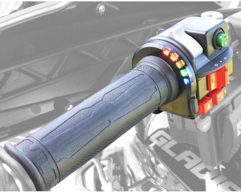 The Apollo-X heated grips feature an integrated 5 temperature level thumb switch which provides riders the ability to easily change the temperature of the grips without removing their hands from the handlebars. In effect, this will permit the rider to better focus on the road resulting in a safer ride.