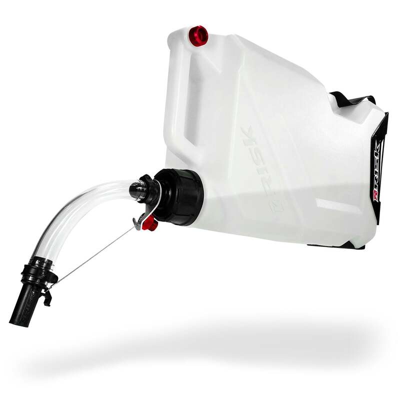 Wrestling a full utility jug and getting the spout in and out of small container holes is always a challenge, which usually ends up with spilled liquids. Risk Racing now offers the “Hose Bender” spout, a utility jug spout which uses the cap and lanyard to create a natural bend to the hose.