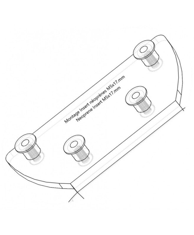The ultra-reinforced fixing is made of 5 mm thick steel to stiffen the whole plate support against vibrations. It is placed on the wheel axle of the swingarm and takes the place of your aluminum chain tensioning wedge if needed.