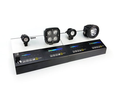 Seeing is believing! Once your customers see the power of the DENALI Lights, they’ll be sold. The interactive dealer display can be plugged directly into an 100v-240v outlet, or by using the included battery power wiring adapter, the display can be powered from a standard motorcycle battery, perfect for those remote events where power isn’t available. Sturdy metal construction allows mounting the unit on a shelf, counter or slat-wall (brackets not included).