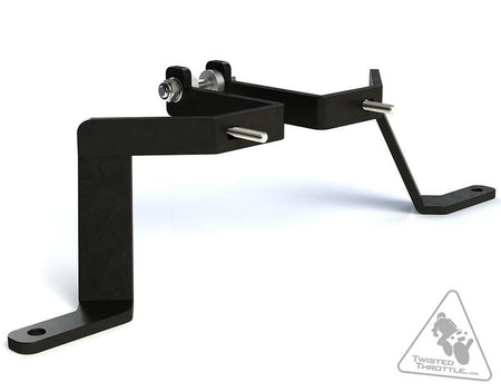The DENALI auxiliary light mount for Honda provides a secure mounting solution for fitment of aftermarket lighting. Robust steel bracketry is laser cut for a precise fit and finished in a durable black powder coating. This versatile light mount is compatible with DENALI DM, D2, DX, D4 and DR1 LED light kits as well as most other popular brands of aftermarket lights. Existing bolt holes on the fairing stay are utilized without the need to drill, cut, weld or modify any components. The low profile design positions the lights close to the fairing for maximum visibility while also minimizing the risk of damage during a tip over or fall