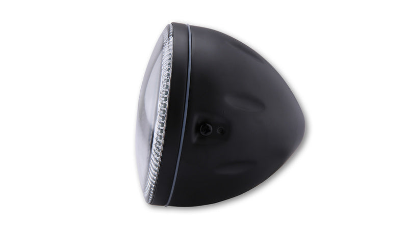 HIGHSIDER 5 3/4 inch SKYLINE headlight with LED parking light ring, metal housing, H4, 12V 60/55 W, side mounting, E-marked, available in various colours.