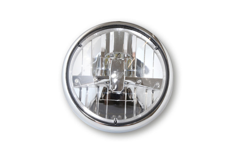 HIGHSIDER 7 inch LED headlight RENO TYP 3, metal housing, clear glass, round, side mounting, E-approved.