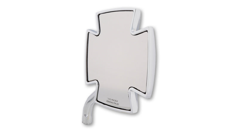 Cross design mirror including extra adapter for Harley Davidson and for Yamaha, E-approved.