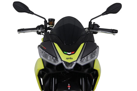 R: the R racing screen by MRA is 4 cm longer than the original screen and markedly raised along the centreline. The black grid printed onto the lower part of the screen is an eye-catching visual design detail. The double- bubble screen is ideal for that genuine racing sensation. Available in clear, grey, and black.