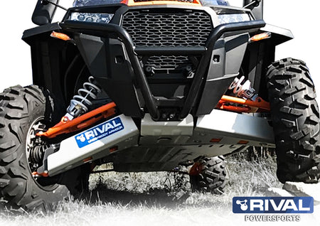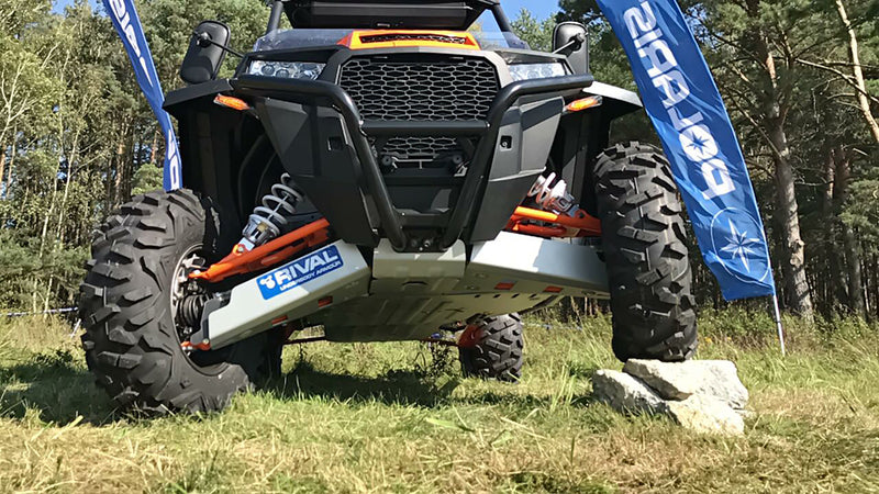 RIVAL Powersports offers vehicle specific skid plate sets to minimize the risk of damage to most vital components by giving your ATV, UTV or SSV the ultimate underbody protection. The skid plates and a-arm guards are made from high strength 5052 H32 aluminum with powder coated finish for excellent durability and great looks.