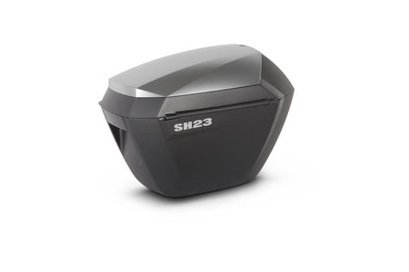 The SH23 side cases stand out for their elegance, lightness and functionality. They have a great aerodynamic shape and retain their waterproofness and resistance. All the volume capacity is usable on the SH23 and the top opening allows the rider to access the load without having to get off the bike.