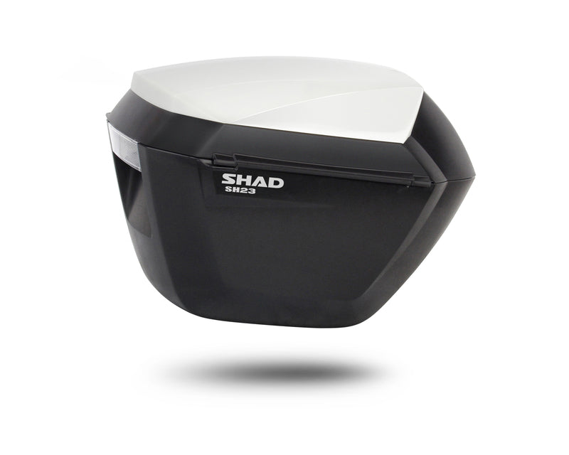 The SH23 side cases stand out for their elegance, lightness and functionality. They have a great aerodynamics, impermeability and resistance. In addition they combine perfectly with the top master for a satisfactory and aesthetic full-equip installation. All volume capacity is usable and the top opening allows the rider to access the load without getting off the bike. The discreet and innovative 3P System, with 3 fixing points, facilitate its integration with the line of the motorcycle and makes its assembly simpler.
