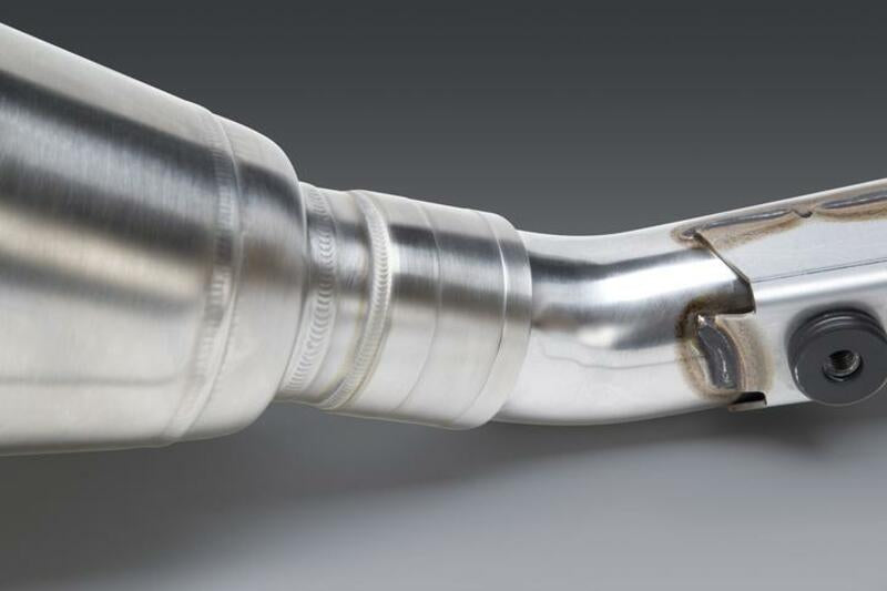 - Tapered muffler body inlet design of RS-12 enables the system to be pushed forward thus helping with weight centralization without sacrificing performance