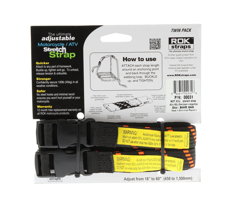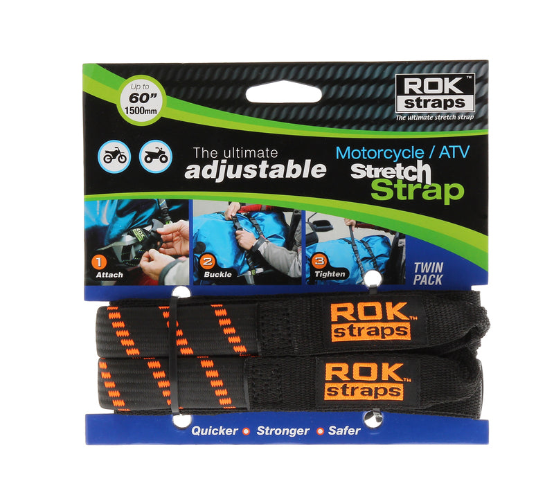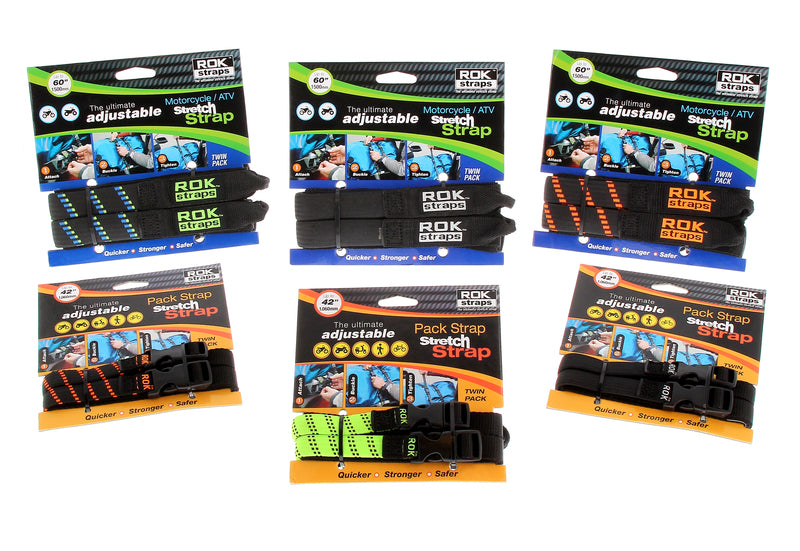 The ROK adjustable Stretch Straps are designed specifically for motorcycles, ATV's, and snowmobiles. These flat cargo motorcycle straps are available in two adjustable and tailored model. Secure anything to a motorcycle without scratches with these straps - no hooks cargo straps!