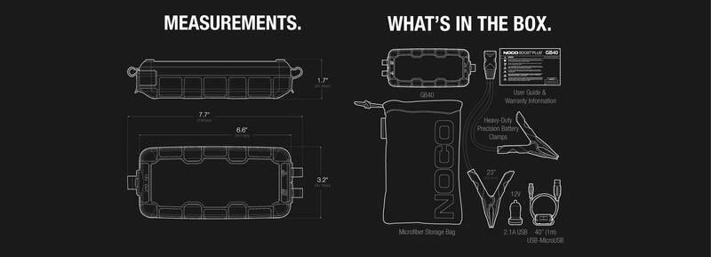 The GB40 is a portable lithium-ion battery jump starter pack that delivers 1000-amps for jump starting a dead battery in seconds. It features a patented safety technology that provides spark-proof connections and reverse polarity protection making safe and easy for anyone to use.