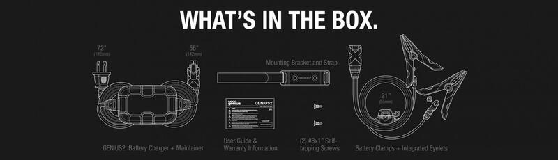 Introducing the GENIUS2, one of our most powerful, highest-performing, energy-efficient, and compact chargers yet. The GENIUS2 is a 6-volt and 12-volt battery charger, battery maintainer, and battery desulfator rated at 2-amps for lead-acid automotive, marine, and deep-cycle batteries, including flooded, gel, AGM, and maintenance-free, plus lithium-ion batteries.
