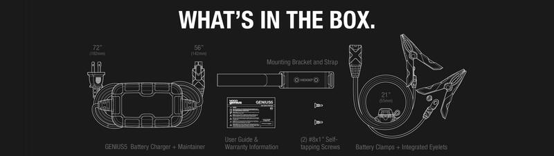 Introducing the GENIUS5, one of our most powerful, highest-performing, energy-efficient, and compact chargers yet. The GENIUS5 is a 6-volt and 12-volt battery charger, battery maintainer, and battery desulfator rated at 5-amps for lead-acid automotive, marine, and deep-cycle batteries, including flooded, gel, AGM, and maintenance-free, plus lithium-ion batteries.