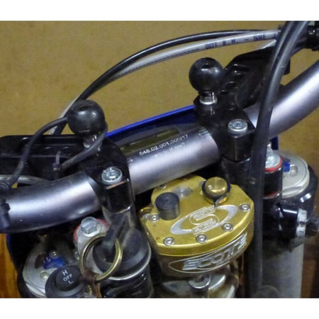 For M8 handlebar bolts, the RAM-B-367U motorcycle handlebar base will replace the existing bolt with a 1" B size ball. This rubber ball base provides shock and vibration damping, and is compatible with a wide variety of B size RAM double socket arms and device holders. The RAM-B-367U motorcycle handlebar base will work with any motorcycle that features an 8mm bolt or smaller on its structure. A smaller bolt can be used, though the load capacity decreases with the bolt size.