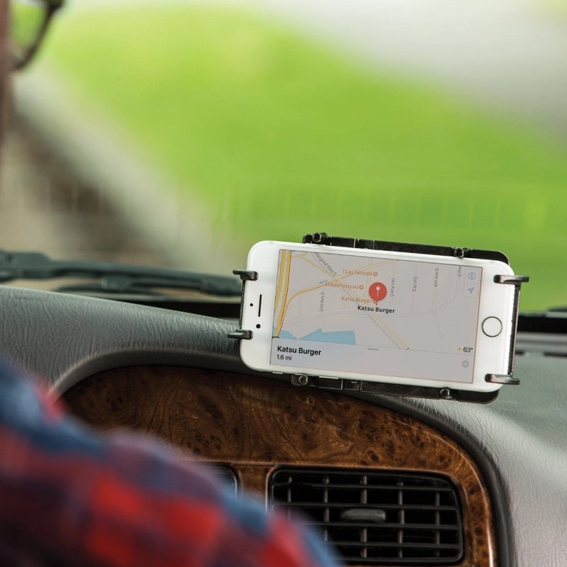 - Spring-loaded holder features adjustable side supports that provide a secure fit for a variety of large phones and other devices; easily insert and remove your phone with one hand