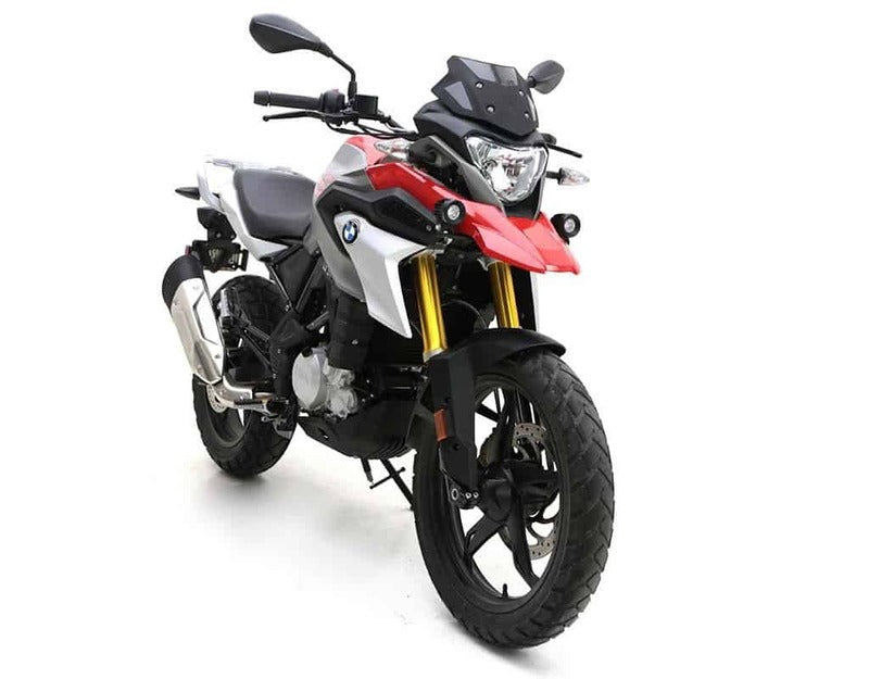The DENALI light mount for the BMW G310GS provides a clean and secure solution for adding auxiliary lighting. Laser cut steel brackets are powder coated in an attractive matte black finish that improves durability and corrosion resistance. No drilling cutting or any other modifications required for proper fitment. Enhance every mile on your GS with a set of auxiliary lights and this light mount from DENALI!