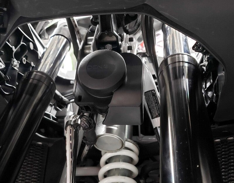 This vehicle specific split horn mount allows you to mount the DENALI SoundBomb Split Dual-Tone Air Horn in the optimum location on your BMW R 1250 GS/GSA. This kit includes one powder-coated steel bracket to mount the horn compressor behind the cylinder head and a second bracket to mount the horn acoustic unit centered under the fairing stay.