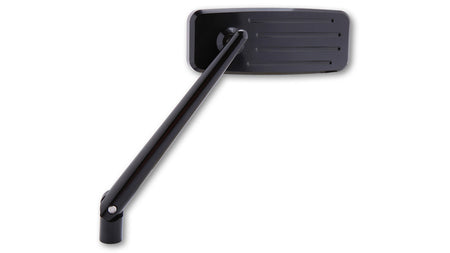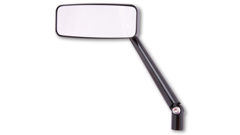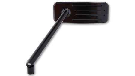 CNC-milled Alu-mirror ACTION, rectangular head, chrome plated or black, adjustable stem, incl. one extra adapter M 10 with L/Hand thread.