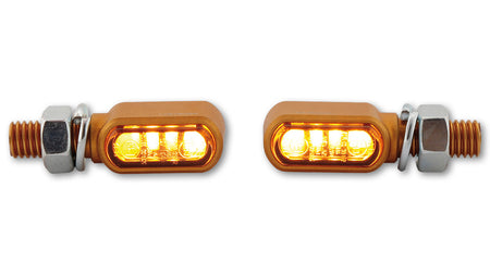 HIGHSIDER CNC LED Indicators Little Bronx, Gold, Tinted Glass, E-Approved, (pair)