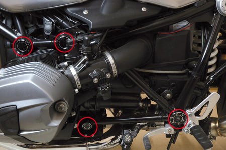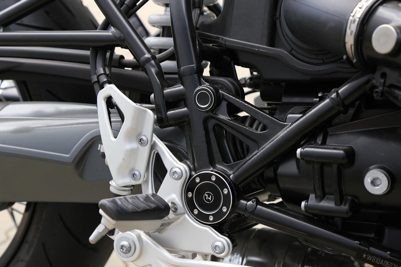 The black anodized aluminum caps cover the frame holes of the BMW RnineT. Combined with polished bevels, these caps stand for a noble, stylish design and fit perfectly to our HIGHSIDER CONERO series.