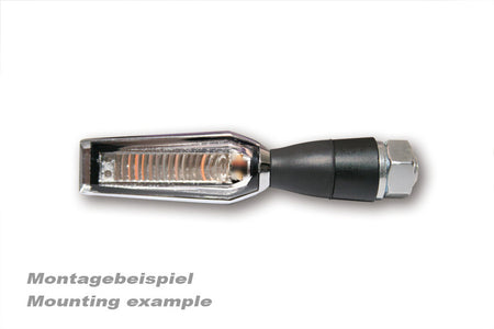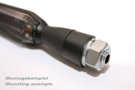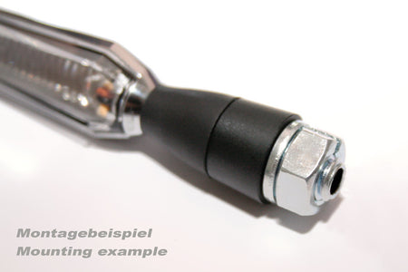 Aluminium spacer sleeve for almost all indicators with an M8 threaded bolt from HIGHSIDER. A slot in the sleeve facilitates the passage of the cables. Can be used either as a turn signal extension or as a spacer if the threaded bolt on the lamp holder should hit the inside of the lamp housing when attaching it to the lamp holder.