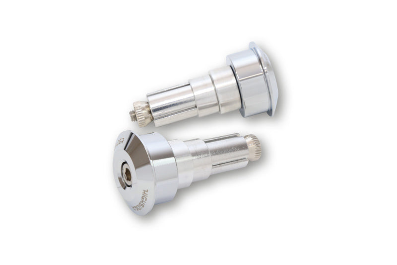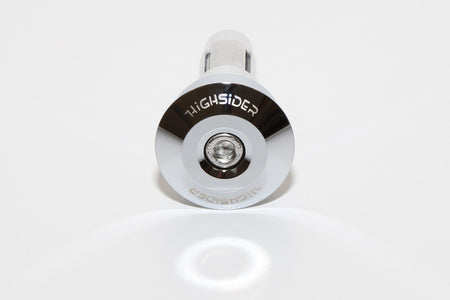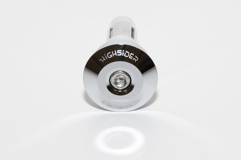 Bar End Weights made of chrome-plated or black aluminium with chrome-plated or black central screw. Universal fit for handlebars withInner diameter from 12 to 22 mm – therefore for most 7/8 inch and 1 inch aluminium or steel handlebars. All hanging bar end mirrors of the brand HIGHSIDER and SHIN YO can be mounted with external clamps.
