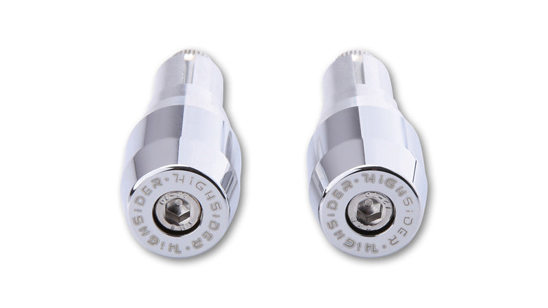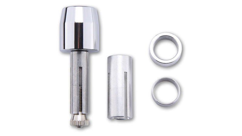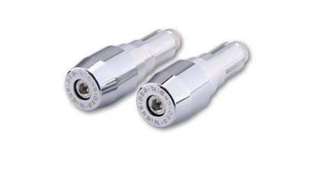 Chrome plated or black handlebar ends, suitable for handlebars with an inner diameter of 12 to 22mm – i.e. for most 7/8 inch and 1 inch aluminum or steel handlebars. All our handlebar end mirrors (hanging mirrors) with a diameter of 1 inch (25.4 mm) can be attached to the Bar End Weights.
