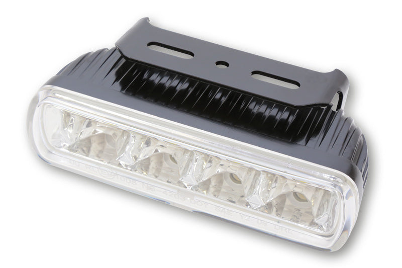 The LED daytime running light with 4 LEDs 1 Watt is built into a rectangular, black housing made of aluminium. The powerful LEDs significantly increase the perception of motorcyclists by other road users. Including universal holder, E-approved.