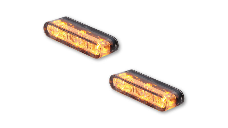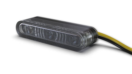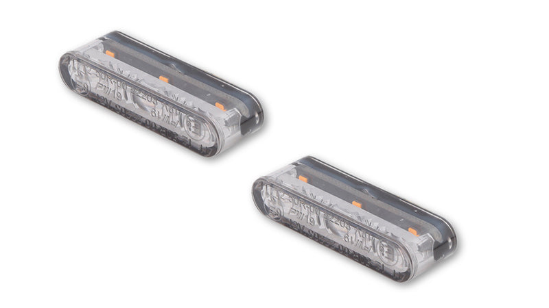 LED built-in turn signal for almost invisible installation on motorcycle, quad or scooter. The HIGHSIDER STAR-MX1 PRO can be fitted in many positions on the vehicle and is particularly popular for conversions where turn signals should not be visible or simply have no space. Elegant look with tinted glass and unmissable thanks to illuminated LEDs. For gluing or laminating, E-tested for front and rear, suitable for vertical and horizontal installation.