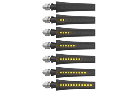 If the individual LEDs light up one after the other when flashing, aoptical wiping effect, a kind of light band from the inside to the outside. Known by some well-known car manufacturers, this modern technology is now also available for the motorcycleavailable.