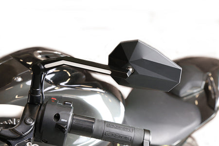 The characteristic stealth design known from the military stealth technology distinguishes the shapely and high quality manufactured mirror. Combined with the matt black colour, the mirror head made of high-quality plastic with its angular elements has a striking appearance.