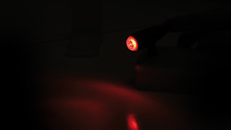 Taillight with a power LED and clear glass, embedded in a metal housing, E-approved.