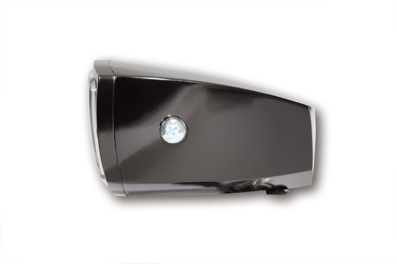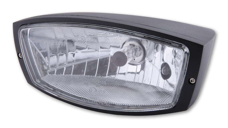 H4 halogen main headlight including parking light and a metal housing in black or chrome-plated. The reflector emits a bright, symmetrical light – for good road illumination and optimum visibility. The trapezoidal headlight captivates by its soft, curved lines and the noble high-gloss housing, E-approved.