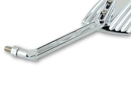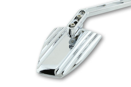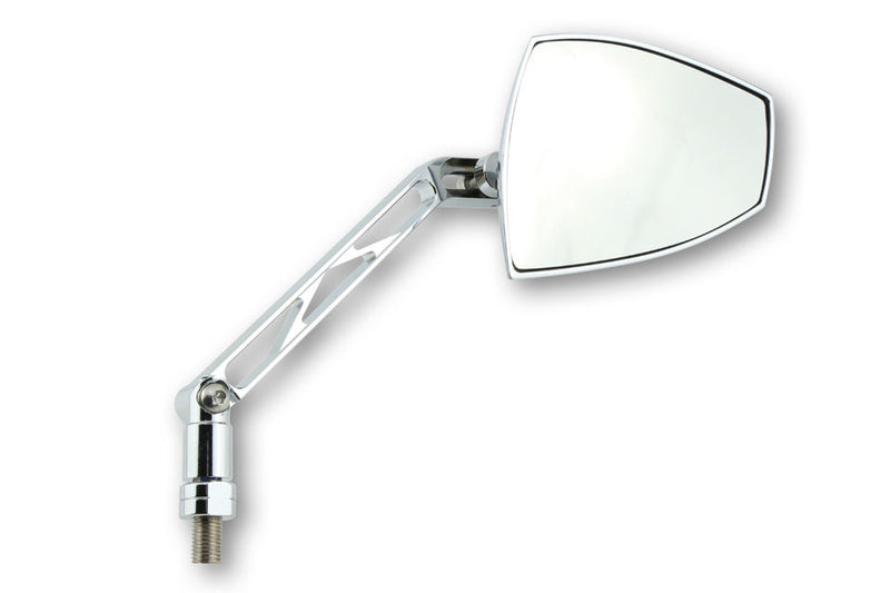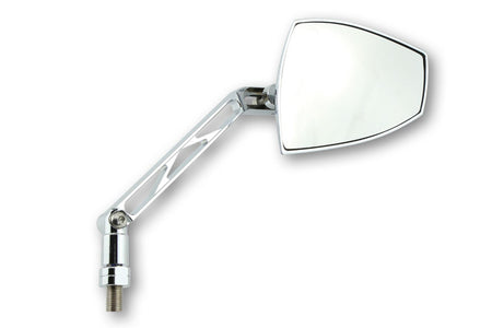 The HIGHSIDER WAVE mirrors visually complement any motorcycle model in the colors silver, black, red, gold or chrome. Small colored accents between the mirror head and arm add color to your machine. The asymmetrical shape and the CNC milled lines of the case create both a modern and a classic look. The mirror head is supported by an aluminium arm, which is connected classically by M10x1.25 adapter is screwed into the handlebar fitting.