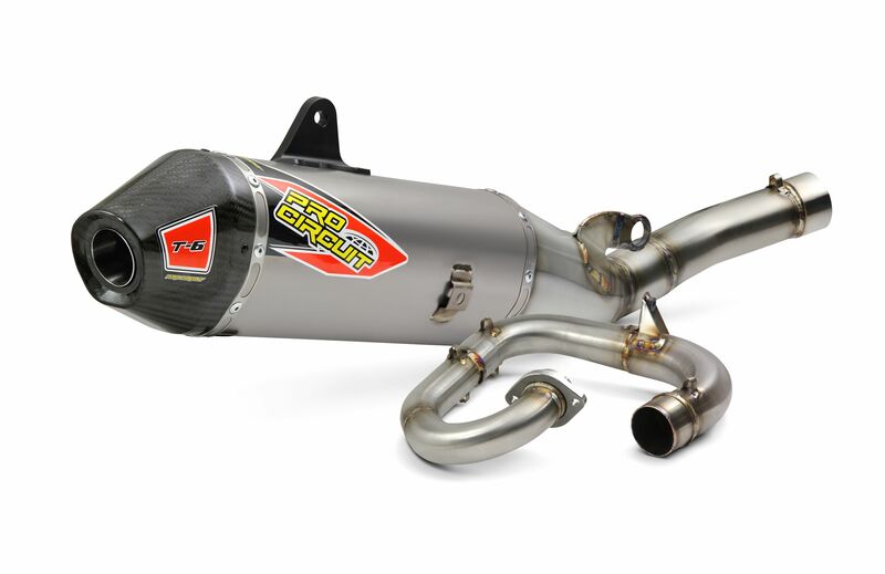 This full race system offers the perfect mix between increased strength and durability while giving riders an improved performance. Pro Circuit T6 Euro exhausts are specialy made for FIM sound test approval.