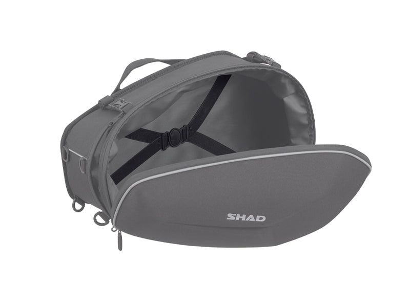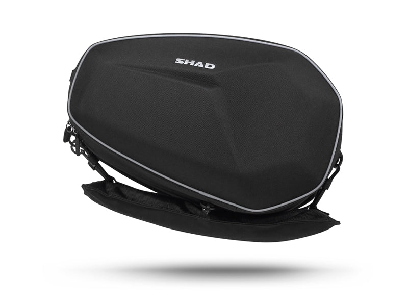 Expandable Saddlebags with a capacity from 46 to 58l (2 units). It has 3 installation modes to the motorcycle, SHAD fitting systems SR or SBH for compatibles motorbikes or with universal straps. SHAD fitting systems ensure stability and aesthetics integration to the bike with minimal weight.