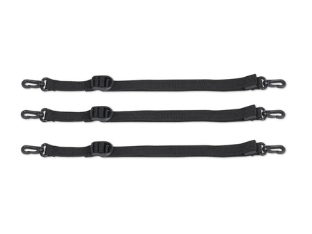 The bags have straps to adapt the volume to the load, security straps to provide a superb subjection and stability, and water-resistant covers with drain holes. Made of 600D polyester, thermo-formed EVA providing a semirigid cover and PES inner structure to maintain the shape. Its composition ensures UV and abrasion resistance and the aerodynamic shape of the set.
