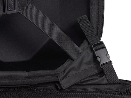 Each bag E48SR includes an inner bag which combined with the zipper and the resistant ABS material, it protects the interior against water. Main material compliant with REACH regulation and its reflective elements increase the visibility when driving. The cover offers an inner lid with zippered mesh for a better organisation of the load. The main compartment has inner compression straps to avoid the movement of the gear.