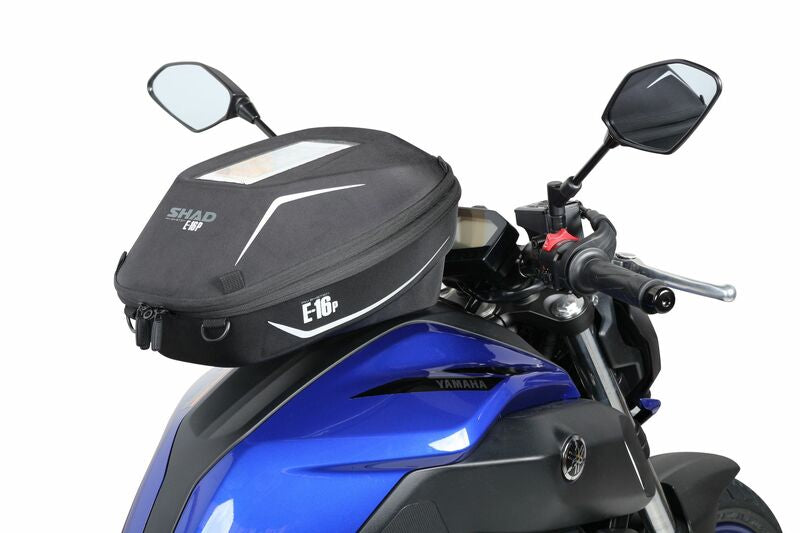 The innovative PIN SYSTEM secures the tank bag to the motorcycle in a safe and easy way. 3 or 4 of the original gas cap screws are replaced with the discrete 'pins', making the installation very simple and done in only a few minutes.