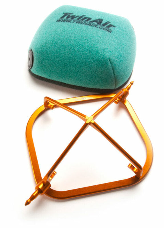 The best filter in the world can’t do its job if there are leaks in the seal of the airbox.That’s why Twin Air provides a complete line of products to ensure a leak-proof, fool proof fit. Twin Air’s PowerFlow kit comes with a rigid, lightweight, billet aluminum cage that provides a tight seal to the airbox and replaces your flimsy plastic stock cage. The kit include a pre-oiled Twin Air filter, a special aluminum cage and all necessary mounting hardware.