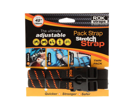 The ROK adjustable Stretch Straps are designed specifically for motorcycles, ATV's, and snowmobiles. These flat cargo motorcycle straps are available in two adjustable and tailored model. Secure anything to a motorcycle without scratches with these straps - no hooks cargo straps!