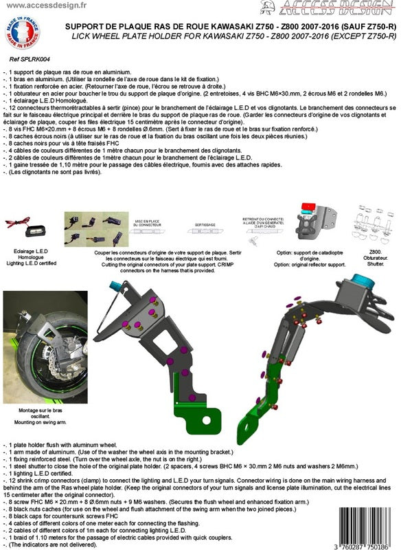 ACCESS DESIGN ''Wheel Fitted'' License Plate Holder Black Kawasaki Z800