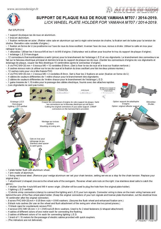 Access Design’s « wheel fitted » side mount license plate holder is an unavoidable customizing accessory. For futurist or even vintage style, it will help you to tune your 2 wheeler your own way. And for sure the bike will look unique!