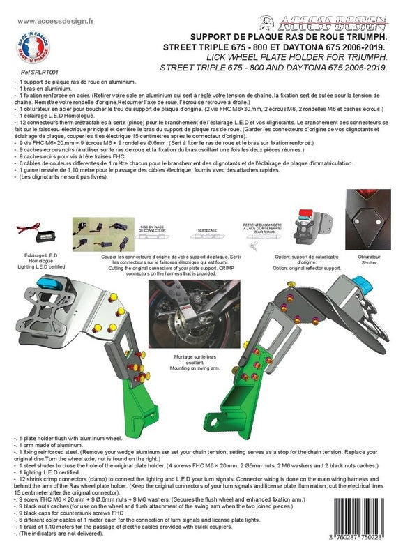 ACCESS DESIGN ''Wheel Fitted'' License Plate Holder Black Triumph Street Triple 800