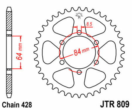 JT SPROCKETS Steel Standard Rear Sprocket 809 - 428 - 1075121002