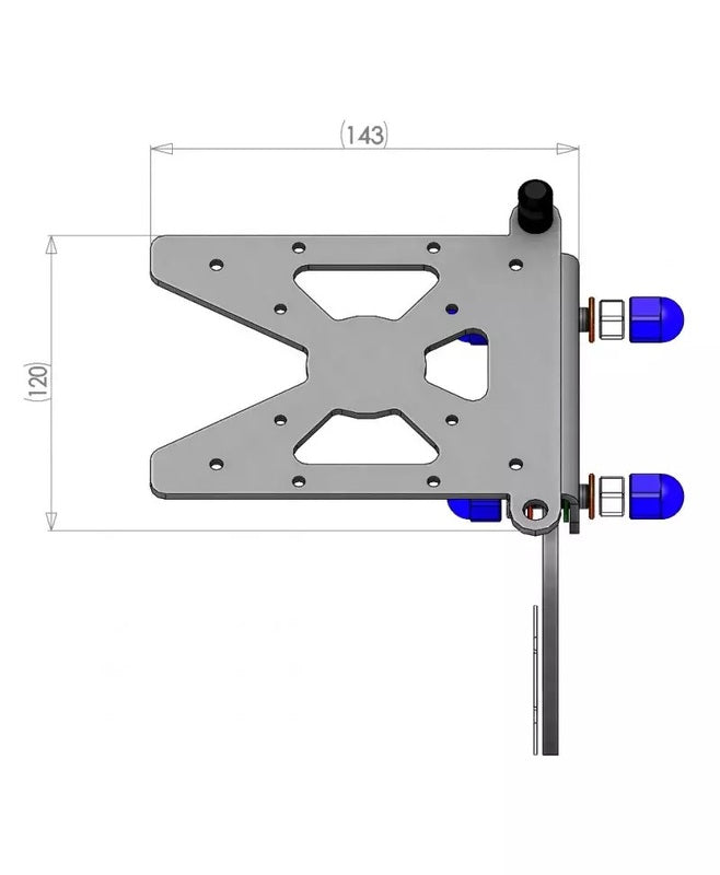 The plate support is made of 3 mm thick steel and the fixing lug is 5 mm thick stainless steel, which ensures rigidity for all constraints.