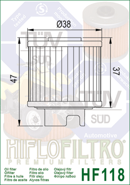 Hiflofiltro is the world's first and only TÜV approved motorcycle oil filter. Constructed using the best materials available, all Hiflofiltro oil filters meet or exceed original equipment performance levels. Available for street, scooter, motocross, enduro, ATV, UTV, marine outboard, and snowmobile models.