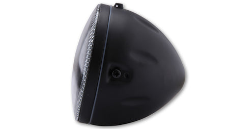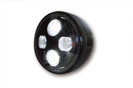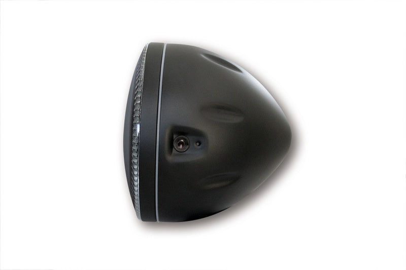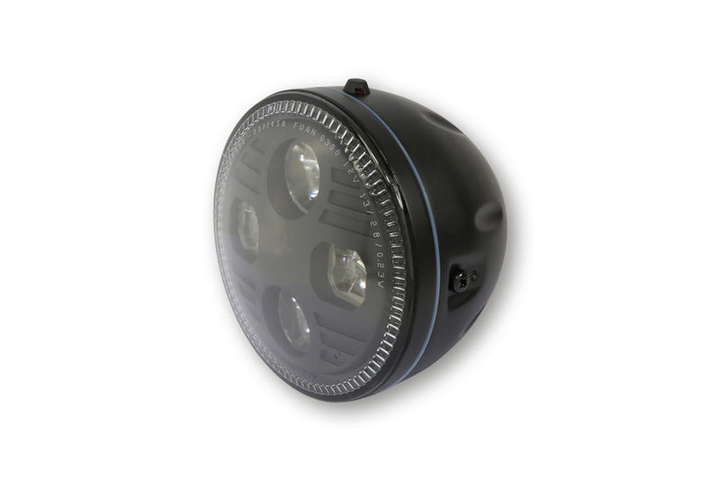 HIGHSIDER 5 3/4 inch LED headlight ATLANTA with parking light, metal housing, side mounting, E-Homologated. Available in different colours.