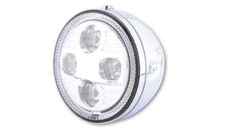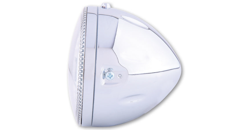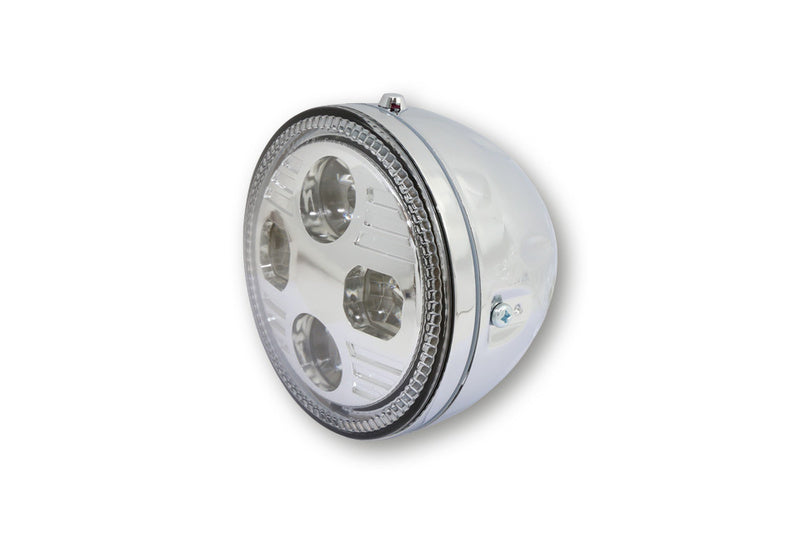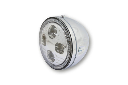 HIGHSIDER 5 3/4 inch LED headlight ATLANTA with parking light, metal housing, side mounting, E-Homologated. Available in different colours.